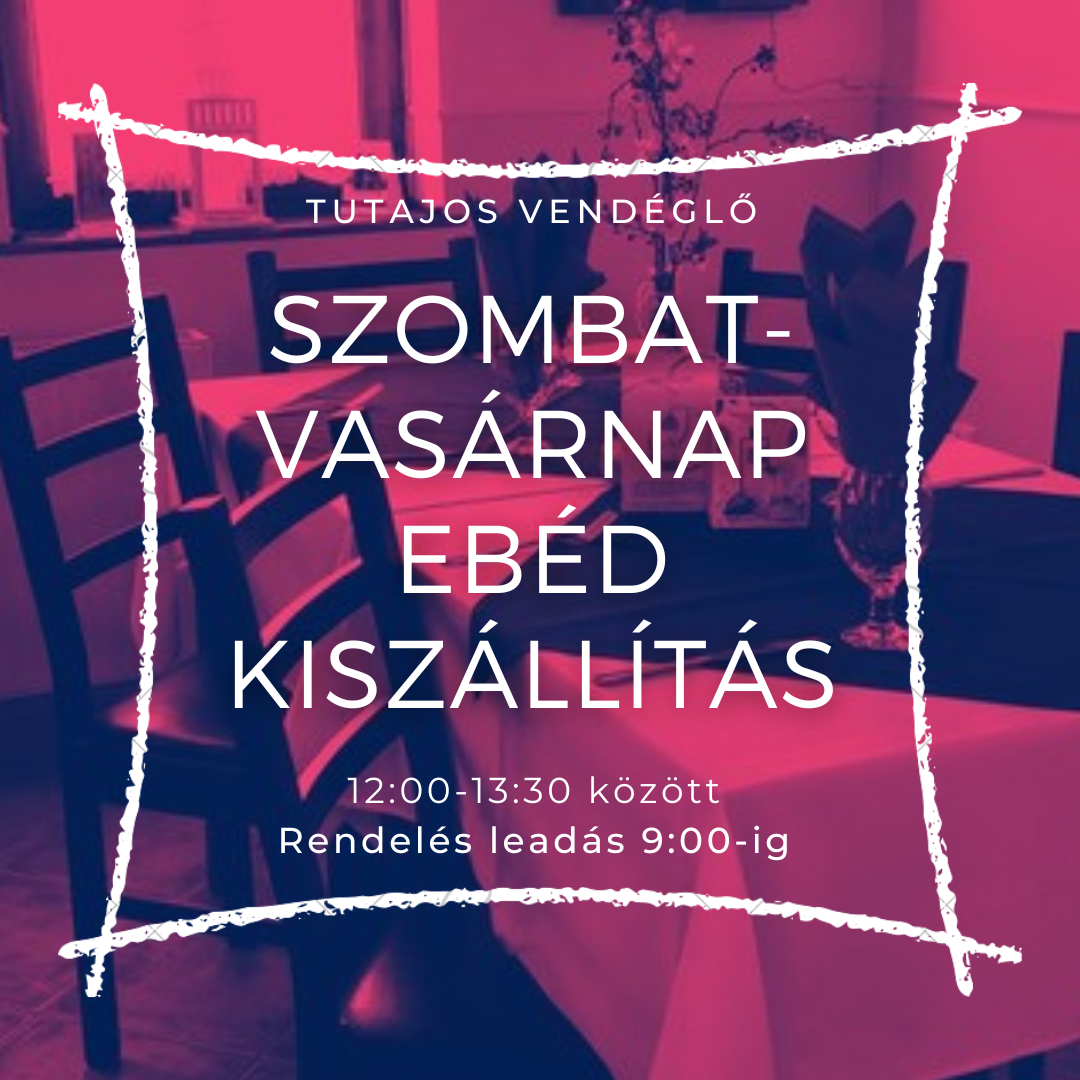 Szombati és vasárnapi ebédrendeléseiteket kiszállításra, elvitelre kérjük aznap 09:00 óráig leadni.